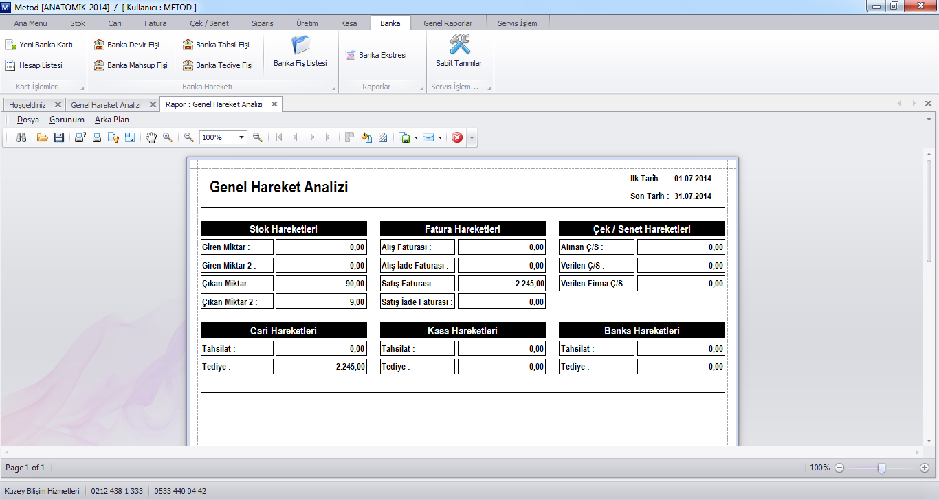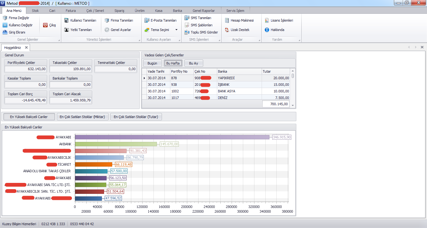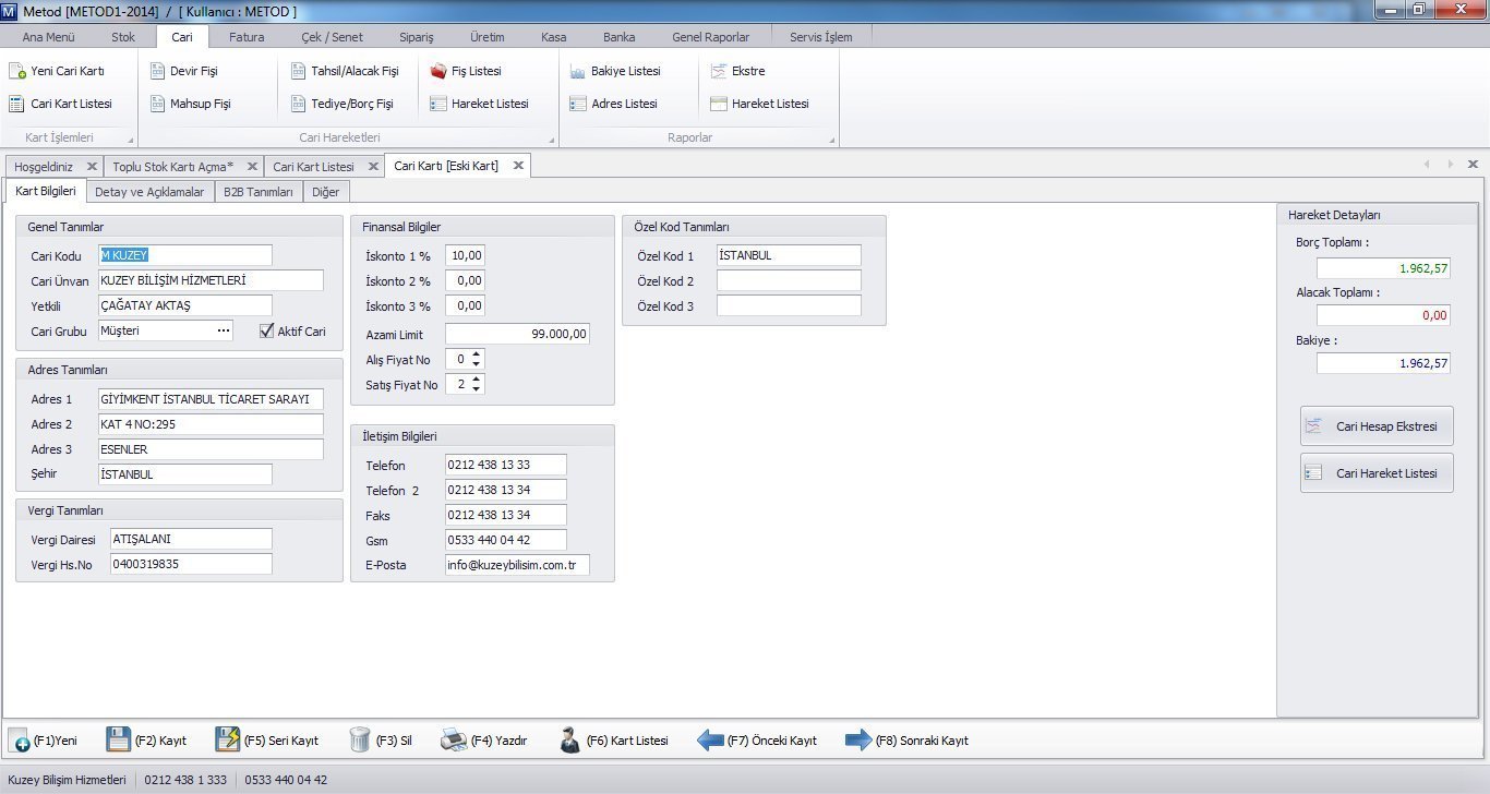 Kuzey Bilişim Yazılım Ekibi tarafından geliştirilen, METOD Muhasebe Programı, üst düzey bilgisayar bilgisine ihtiyaç duymaksızın, herkesin kolayca anlayıp kullanabileceği bir yazılım… Muadili ürünlerden farklı olarak; sadeleştirilmiş kart, fiş ve hareket ekranları ile hızlı ve kolay işlem yapabilir, özelleştirilebilir ve rahat okunabilir rapor ekranları ile istediğiniz an firmanız ile ilgili analizleri ve dökümleri kolayca alabilirsiniz… MS SQL Tabanlıdır ve Windows işletim sistemleri ile tam uyumlu olarak çalışır...Dahili Barkod El Terminali Yazılımı ve Mobil Cihaz (CepTelefonu, Tablet vs.) Desteği ile İşletmenizin her türlü yazılım ihtiyacı için Tek Program … Ayrıntılı bilgi ve Demo için bizi arayın…